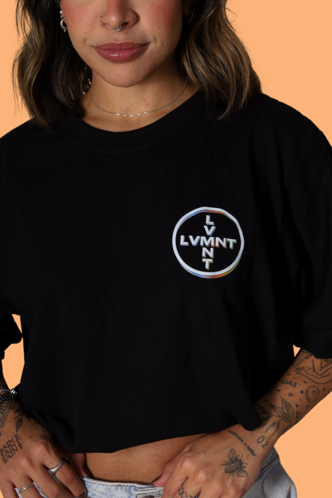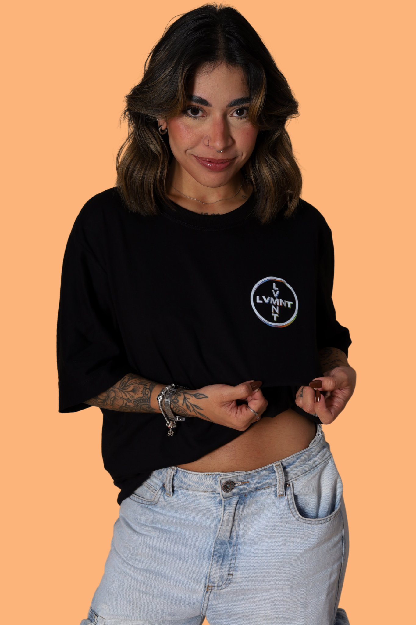 Cropped Max com modelagem tradicional de camiseta gola''O'' com ribana e costura ombro a ombro. Estampa baseada na música Ela É Completa do grupo Levemente Sensual